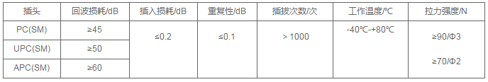 連接衰減:≦0.5dB(包括互換和重復) 互換回波損耗:≧35dB 插拔耐久性壽命:>1000次仍能滿足衰減要求。