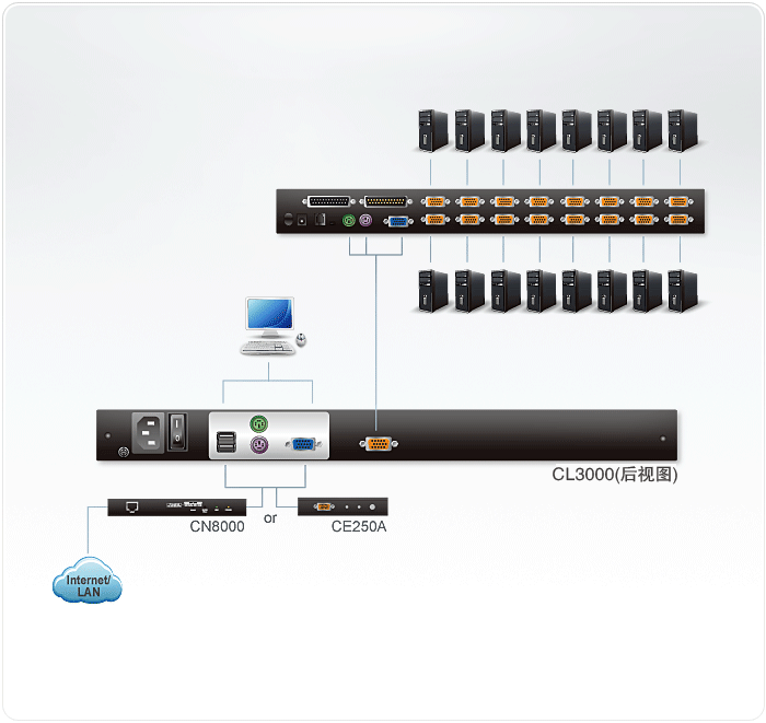 第二組控制端連接端口–可從另外的控制端(顯示器、USB或PS/2鍵盤(pán)與鼠標(biāo))管理電腦